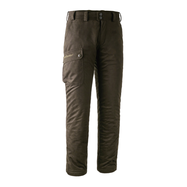 Razvito za lovce, ki postavljajo najvišje zahteve do svojih zimskih oblačil in opreme. Ponudbo jaken Explore dopolnjujejo trpežne in vsestranske zimske hlače Explore. Hlače imajo nastavljiv, elastičen pas za maksimalno udobje, dva sprednja žepa, žep na nogah z zavihkom in zaponko za enostaven dostop, žep za nože na levi nogi in zadnji žep z zadrgo. S kombinacijo 100 % vodoodporne in zračne membrane Deer-Tex® Performance Shell® in izolacije Deer-Tex® Temp, ki preprečuje mraz, te hlače nudijo dodatno zaščito, zlasti pri lovu v hladnejših podnebjih.